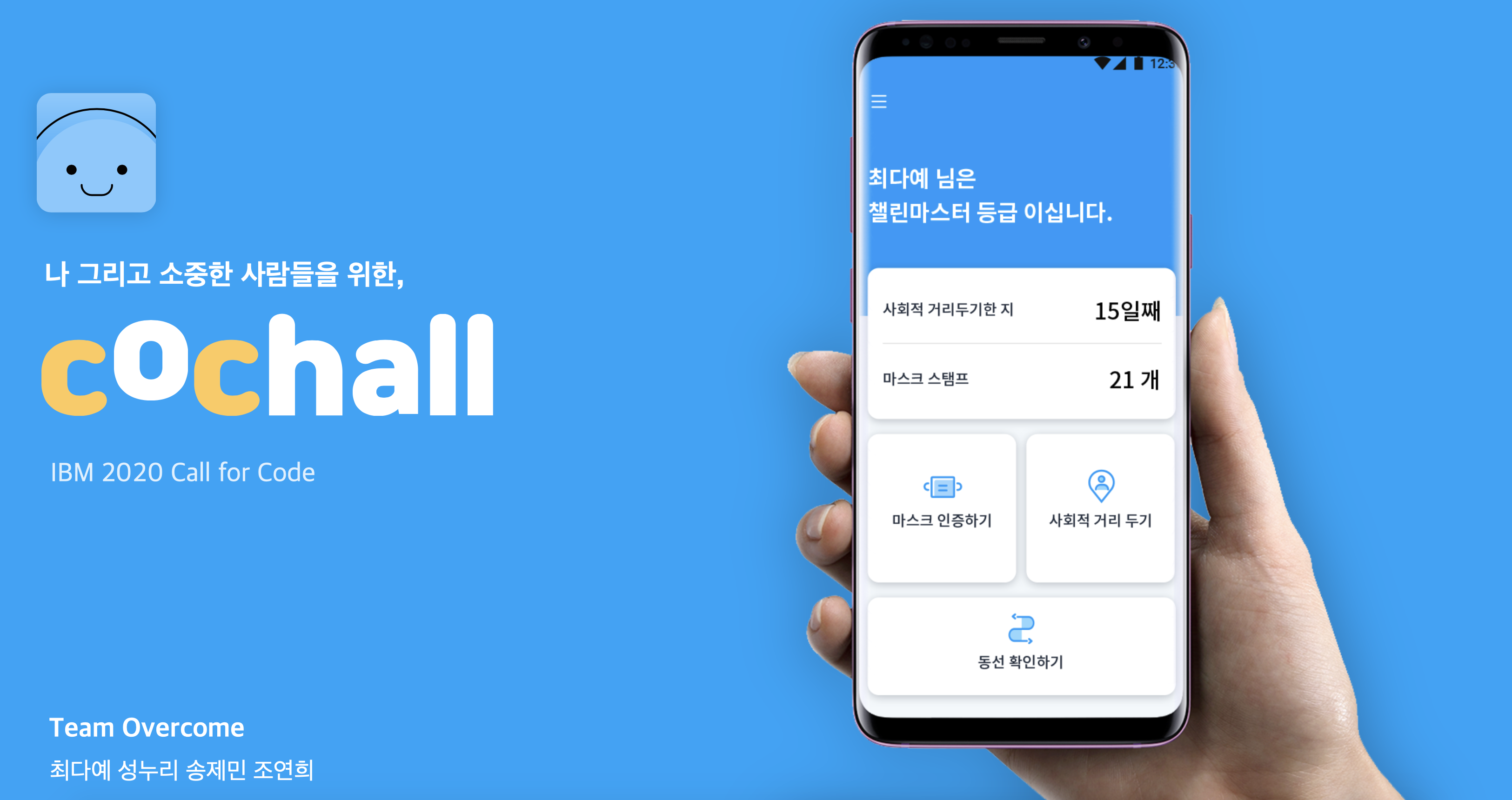 저희팀은 코로나19를 극복하자,라는 뜻으로 overcome이라는 팀명을 정했습니다.