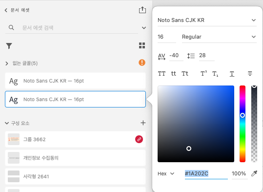 폰트시스템에서 컬러가 변수값이 아니라면, 변화된 컬러라도 적용시켜주라구!! 라고 속으로 울부짖었다.