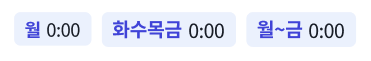 나는 일단, ui 시스템을 만들기 위해 요일과 타임에 일정한 마진값을 줄것이고, 해당 태그 역시 일정한 패딩값을 줄것이다.